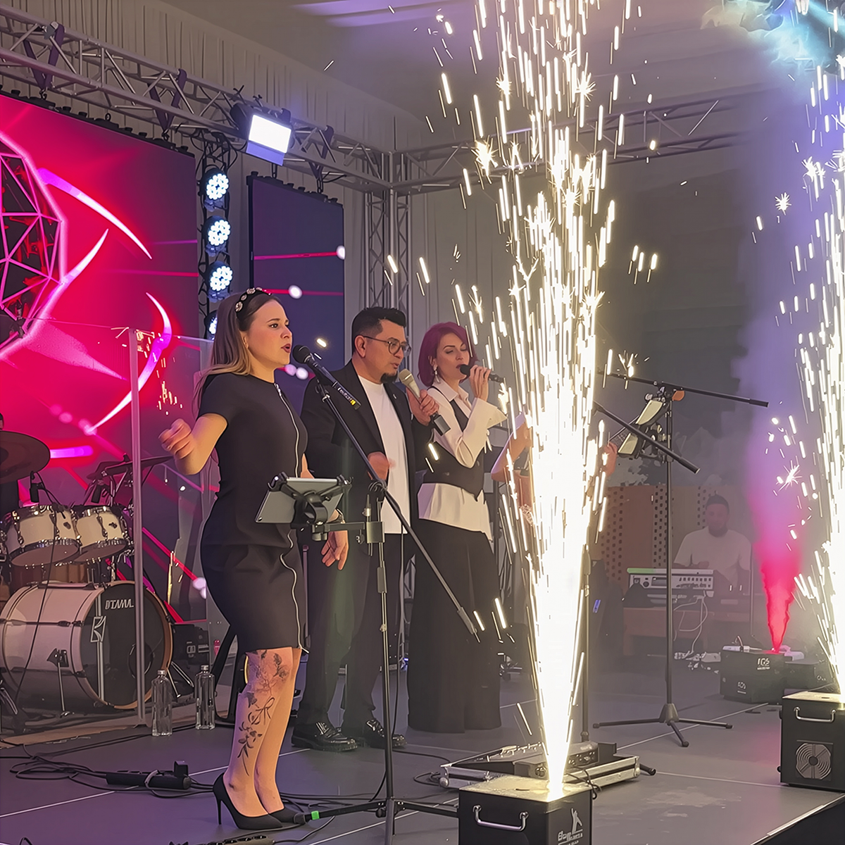 Fotografiile și video-urile din galeria noastră sunt doar o mică parte din energia și pasiunea pe care le aducem la fiecare eveniment live. Fiecare spectacol este unic, adaptat perfect la atmosfera dorită de client.